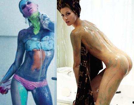 Se, na nova edição de Vogue Brasil, num ensaio de Mário Testino, Gisele Bündchen exibiu um pouco mais de suas intimidades, na edição deste mês de Vogue Itália, voltada igualmente para saúde e beleza e fotografada por Steven Meisel, a modelo brasileira, 30 anos, mãe de dois filhos, resolveu ir mais longe. Ela aparece toda nua fazendo massagens à derrière, cara limpa cheia de cremes, fazendo bronzeamento artificial e mais outras poses surpreendentes, até mesmo saindo do banho, toalha na cabeça. No recheio, Gisele faz leve critica à ditadura de beleza hollywoodeana e prega que as mulheres devem ser “mais reais” nos ensaios do mundo da moda. (No blog do Giba Um)